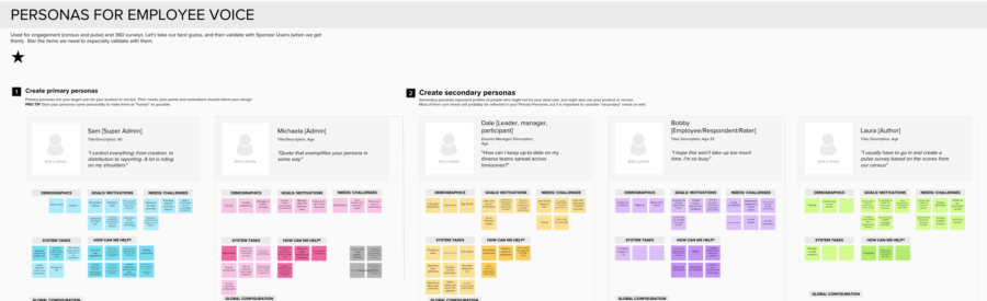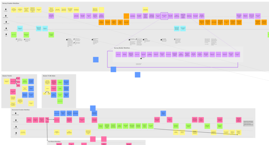 Project included marketplace catalogs, authoring workflows, version control, complex reporting pages, and in-depth organizational management tools. HR professionals could upload their org hierarchy, purchase large-scale census survey templates, distribute to their hierarchy, and monitor results in real time for hundreds of thousands of participants.